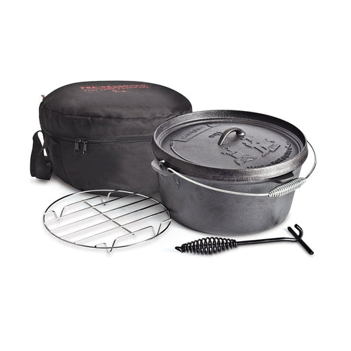 Kit Includes: 9 quart camp oven with flanged lid Camp oven storage bag Steamer rack Mini lid lifter Specifications: Dimensions: 150H x Ø320 (mm) We...