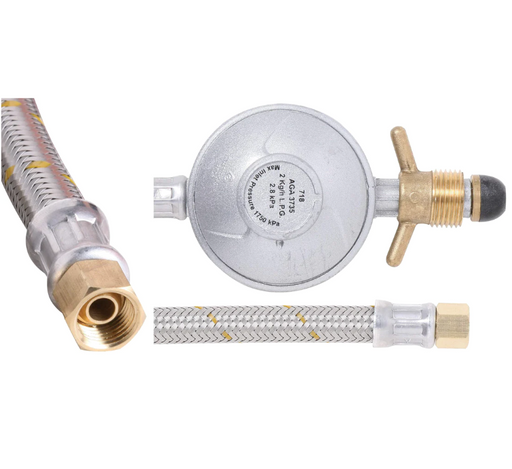This stainless steel braided gas hose with an LCC27 regulator connects appliances with a 3/8" SAE fitting to an LPG gas bottle. It's durable and se...