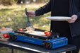 Safety is our priority, and this stove is equipped with a twin release system and a safety alignment mechanism for butane gas cartridges, ensuring secure and reliable operation. Built with a durable powder-coated steel cabinet and a stainless-steel drip tray, this stove is designed to withstand outdoor conditions and provide easy cleaning. It also includes an aluminium non-stick hotplate for added convenience.