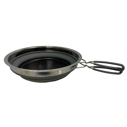 Non-stick collapsible frypan with fold-away heat-resistant handle. Eggs and bacon? Maybe pancakes or sausages. Meal variety won’t be restricted wi...