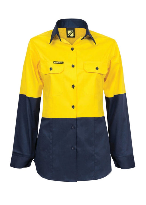 WORKCRAFT Ladies Hi-Vis Lightweight Vented Taped LS Shirt