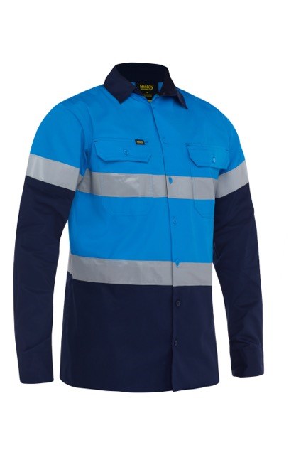 BISLEY HiVis Cool Lightweight Taped Drill Shirt L/Sleeve